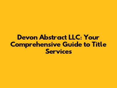 Hey guys! Ever wondered about the ins and outs of property titles, especially when dealing with real estate transactions? Well, you've come to the right place! Today, we're diving deep into Devon Abstract LLC, a key player in the world of title services. We'll explore what they do, why title services are crucial, and how Devon Abstract LLC ensures a smooth and secure property transaction for everyone involved. So, buckle up and let's get started!