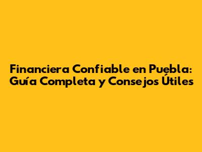 Financiera Confiable En Puebla: Guía Completa Y Consejos Útiles