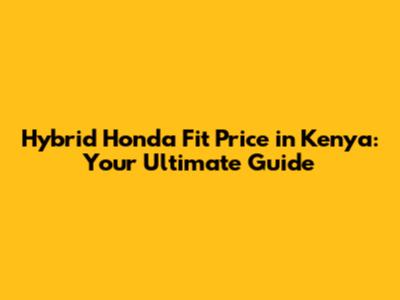 Hybrid Honda Fit Price In Kenya: Your Ultimate Guide