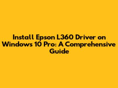 Install Epson L360 Driver On Windows 10 Pro: A Comprehensive Guide