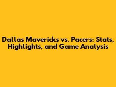 Mavericks Vs. Pacers: Stats, Highlights, And Game Analysis
