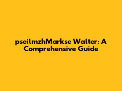 PseilmzhMarkse Walter: A Comprehensive Guide