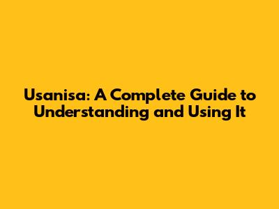 Usanisa: A Complete Guide To Understanding And Using It